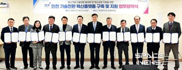 인천시는 중소기업의 기술혁신과 기술전환을 체계적으로 지원하기 위해 기술보증기금, 인천테크노파크, 인천지식재산센터, 8개 중소기업 협·단체와 함께 ‘중소기업 기술전환 혁신플랫폼 구축 및 지원을 위한 업무협약’을 12월 24일 체결했다.