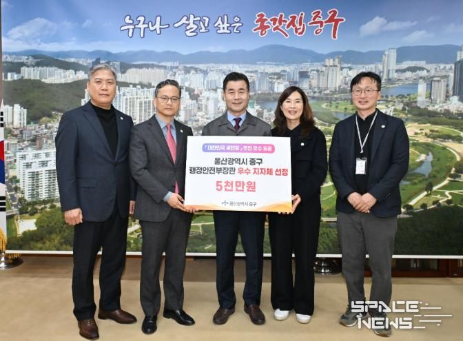스페이스뉴스 스페이스뉴스 기자 | 울산 중구가 행정안전부 주관 ‘대한민국 새단장 캠페인’ 추진 실적 평가에서 우수 지자체로 선정돼 특별교부세 5,000만 원을 확보했다.