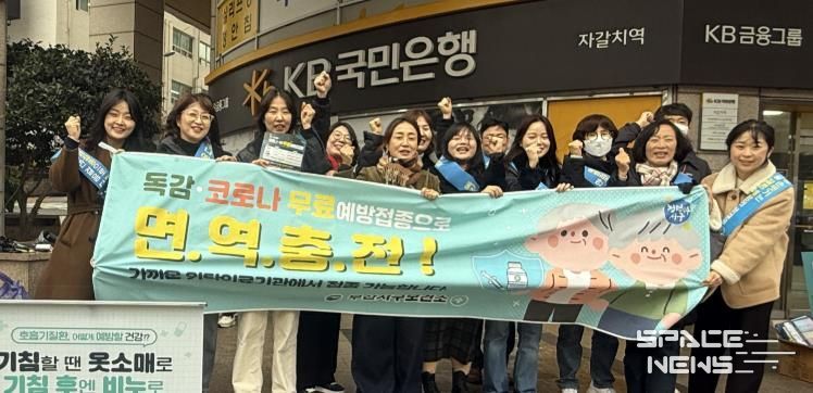 스페이스뉴스 스페이스뉴스 기자 | 부산 서구는 최근 인플루엔자(독감)의사환자 급증과 특히 소아·청소년층에서의 빠른 확산에 대응하기 위해 지난 24일 서구청 버스 환승센터 및 서구청 앞 사거리에서 동절기 ‘독감·코로나19접종으로 Good Goodbye 감염병’ 캠페인을 진행했다.