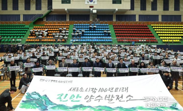 스페이스뉴스 스페이스뉴스 기자 | 진안군이 26일 오후 진안문예체육회관에서 군민 500여 명과 주요 내빈이 참석한 가운데 ‘진안양수발전소 유치 성공기원 범군민 결의대회’를 성황리에 마무리하고, 유치 성공에 대한 강력한 의지를 대내외에 선포했다.