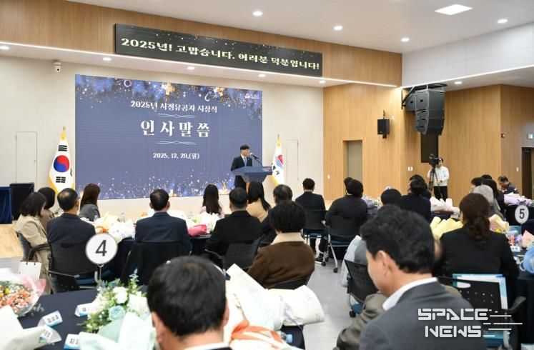 스페이스뉴스 스페이스뉴스 기자 | 거제시는 지난 29일 시청 대회의실에서 시정 발전에 기여한 시민과 공직자 138명을 대상으로 2025년 시정유공자 시상식을 개최해 한해 성과를 공유하는 자리를 마련했다.