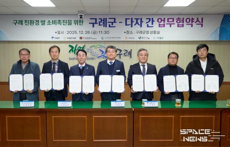 스페이스뉴스 스페이스뉴스 기자 | 구례군은 친환경 농업의 가치를 확산하고 쌀 소비 기반을 강화하기 위해 공공·금융·농협·민간이 참여하는 다자간 업무협약을 지난 12월 26일 군청 상황실에서 체결했다.
