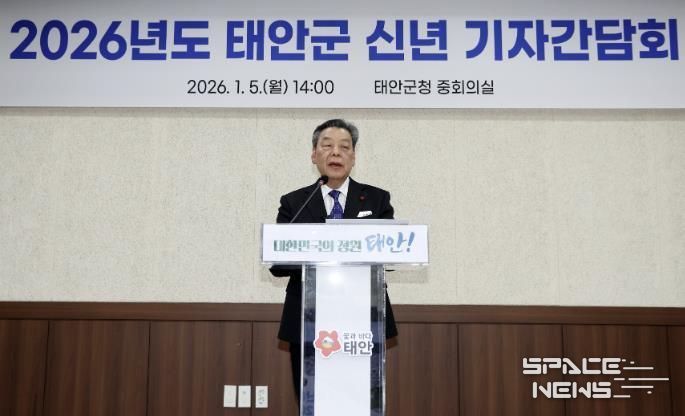 스페이스뉴스 스페이스뉴스 기자 | 가세로 태안군수가 5일 군청 중회의실에서 병오년(丙午年) 새해 신년 기자회견을 갖고, 민선 8기 군정의 마무리와 미래 도약을 함께 준비하는 2026년 군정 운영 방향을 발표했다.
