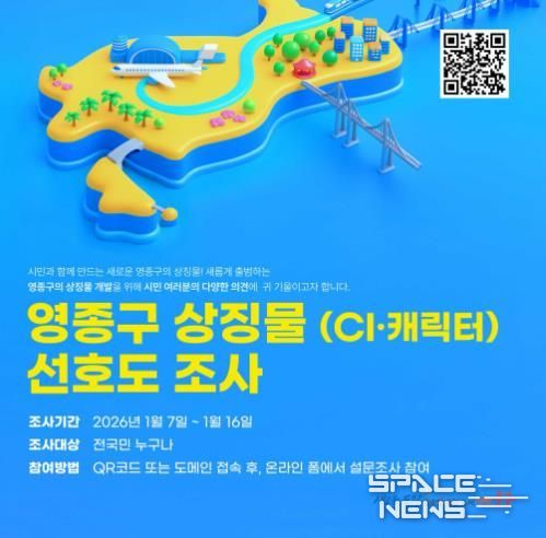 스페이스뉴스 스페이스뉴스 기자 | 인천시 중구는 올해 7월 출범할 ‘영종구’의 정체성과 지역 이미지를 담은 영종구 상징물(CI, 캐릭터) 선정을 위해 선호도조사를 실시한다고 6일 밝혔다.