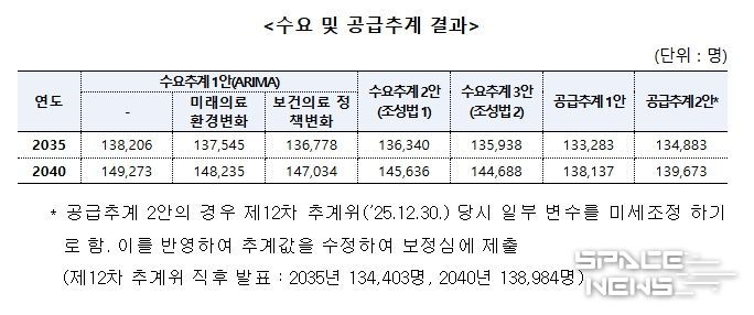한편, 이날 보정심에 보고된 수급추계 결과는 다음과 같다.