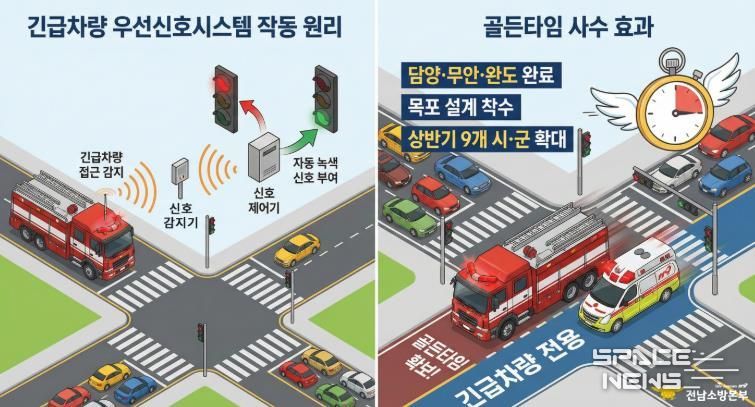 스페이스뉴스 스페이스뉴스 기자 | 전남소방본부는 화재·구급 등 위급 상황 발생 시 소방차와 구급차의 신속한 현장 도착을 돕기 위해 ‘긴급차량 우선신호시스템’을 확대 운영한다고 밝혔다.