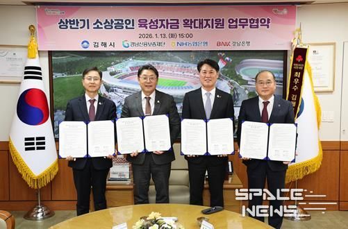 스페이스뉴스 스페이스뉴스 기자 | 김해시는 13일 김해시청에서 NH농협은행, BNK경남은행, 경남신용보증재단과 ‘2026년 상반기 소상공인 지원 업무협약(MOU)’을 체결했다.