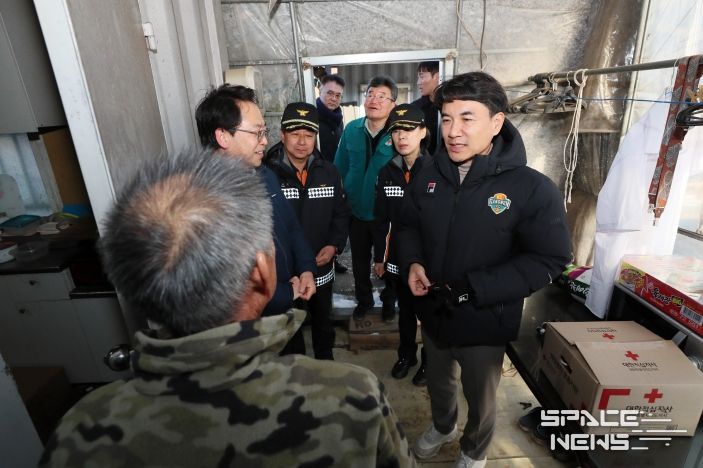 스페이스뉴스 스페이스뉴스 기자 | 김진태 강원특별자치도지사는 1월 13일 밤부터 도내 한파주의보가 발효될 전망에 따라 춘천시 신동면에 위치한 비주택 주거지를 방문해 주거환경 취약계층의 겨울철 안전대책을 점검했다.