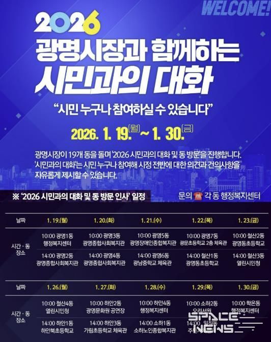 박 시장은 “모든 권력은 시민으로부터 나온다”며 “시민과의 대화를 통해 시민의 목소리를 현장에서 더 가까이 듣고, 이를 광명의 미래를 완성하는 힘으로 이어가겠다”고 밝혔다.