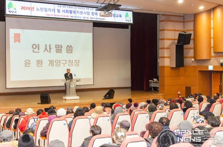 스페이스뉴스 스페이스뉴스 기자 | 인천광역시 계양구는 계양구노인인력개발센터 주관으로 2026년 노인 일자리 및 사회활동지원사업 참여 어르신 2,800여 명을 대상으로, 1월 14일부터 20일까지 구청 대강당에서 안전 및 직무 통합 교육을 실시한다.
