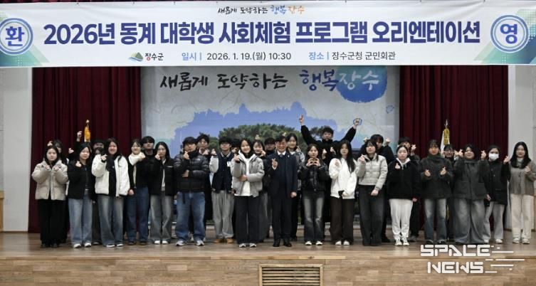 스페이스뉴스 스페이스뉴스 기자 | 장수군은 19일 군청 군민회관에서 2026년 동계 대학생 사회체험 프로그램 ‘오리엔테이션’을 진행하고 3주 간의 행정체험 프로그램을 공식 시작했다고 밝혔다.