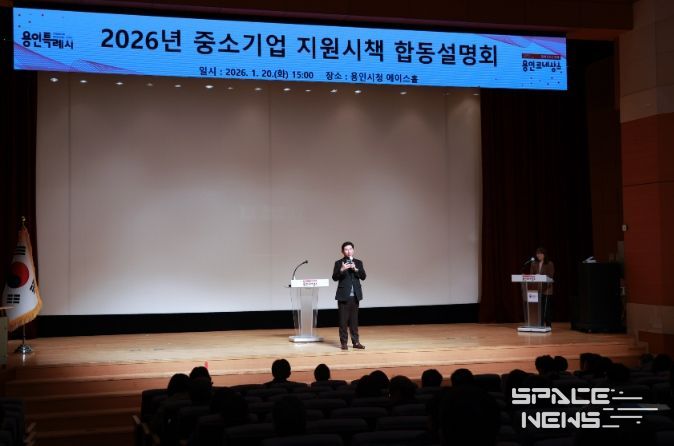 스페이스뉴스 스페이스뉴스 기자 | 용인특례시는 20일 시청 에이스홀에서 지역 내 중소기업 지원 정책을 설명하는 ‘2026년 중소기업 지원시책 합동설명회’를 열었다.
