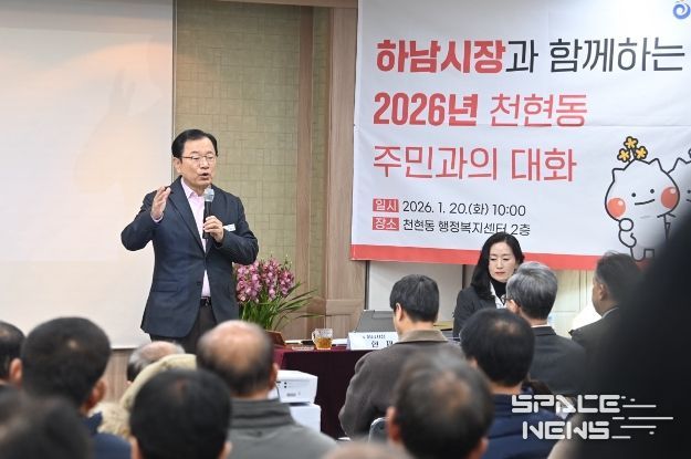 스페이스뉴스 스페이스뉴스 기자 | 이현재 하남시장은 20일 감일동 행정복지센터에서 열린 ‘주민과의 대화’에서 “방아다리길 연결도로 개통과 연계한 버스 노선 개편 및 생활 SOC 확충을 통해 감일신도시 주민들의 정주 여건을 개선하겠다”라고 밝혔다.