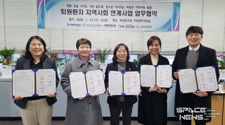 스페이스뉴스 스페이스뉴스 기자 | 부산 부산진구는 지난 21일 ▲인제대학교 부산백병원 ▲온그룹의료재단 온병원 ▲학교법인 동의병원 ▲학교법인 춘해병원과 ‘퇴원환자 지역사회 연계사업’협력체계 구축을 위한 업무협약을 체결했다.