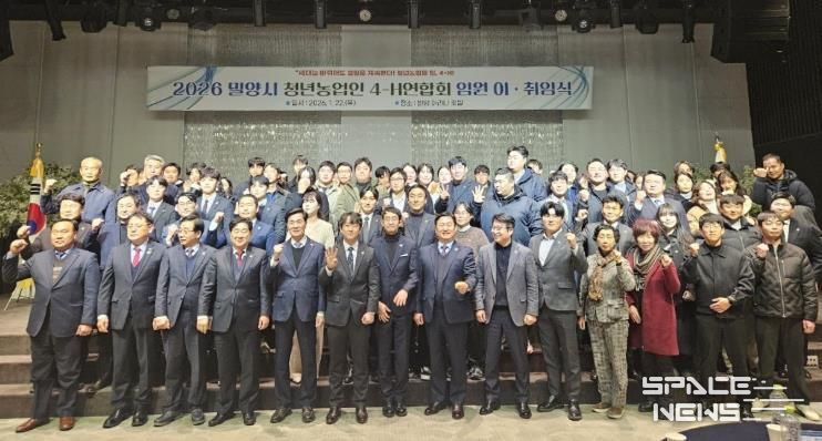 스페이스뉴스 스페이스뉴스 기자 | 경남 밀양시는 지난 22일 호텔 아리나에서 ‘2026 밀양시 청년농업인 4-H연합회 임원 이·취임식’을 가졌다.