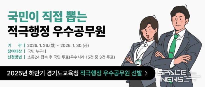 스페이스뉴스 스페이스뉴스 기자 | 경기도교육청이 공공의 이익을 높인 적극행정 우수공무원 선정을 위해 2025년도 하반기 대국민 심사를 실시한다.