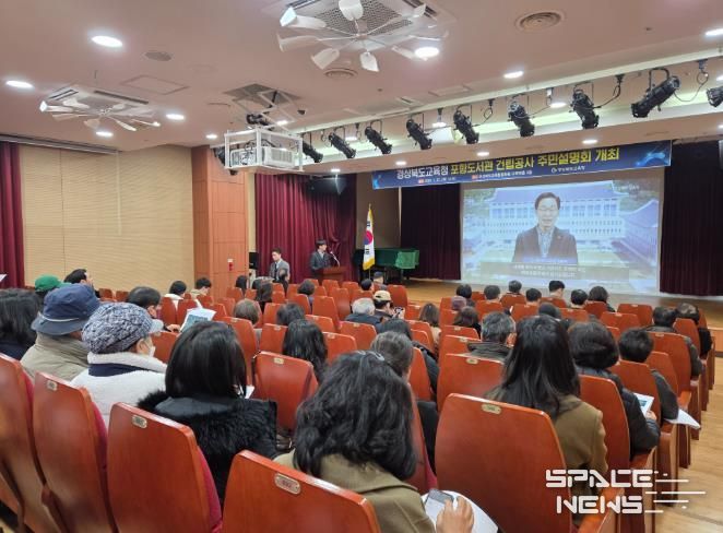 스페이스뉴스 스페이스뉴스 기자 | 경북교육청은 27일 포항시에 있는 경상북도교육청 문화원 3층 다목적실에서 학생과 지역 주민을 위한 열린 교육․문화 공간이 될 ‘(가칭)경상북도교육청 포항도서관’ 건립 공사와 관련한 주민설명회를 개최했다고 밝혔다.