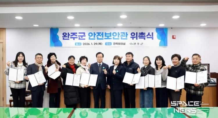 스페이스뉴스 스페이스뉴스 기자 | 완주군이 ‘2026년 완주군 안전보안관 위촉식’을 열고 신규 안전보안관 12명에게 위촉장을 수여했다.