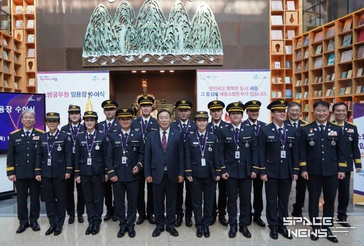스페이스뉴스 스페이스뉴스 기자 | 세종소방본부가 지난 29일 세종시청 책문화센터에서 시민 생명과 안전을 책임질 12명의 신규 소방공무원 임용식을 개최했다.