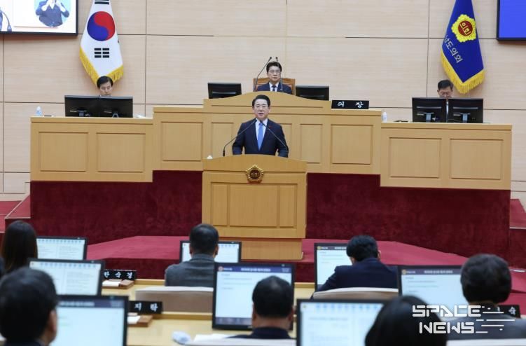 김영록 지사는 이날 제안설명을 통해 “전남·광주 행정통합은 AI·에너지 대전환 시대에 정부의 파격적 지원을 이끌어내 지역의 대부흥 시대를 열기 위한 절박함과 책임감의 산물”이라며 “산업을 일으켜 기업과 일자리가 늘어나고 청년이 돌아오는 균형발전과 번영의 선순환 구조를 만드는 것이 통합의 명확한 목적”이라고 설명했다.
