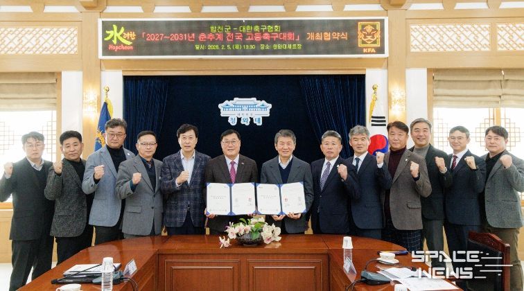 스페이스뉴스 스페이스뉴스 기자 | 합천군은 5일 합천영상테마파크 청와대 세트장에서2027~2031년 춘·추계 전국 고등축구대회 개최 협약식을 가졌다고 밝혔다.