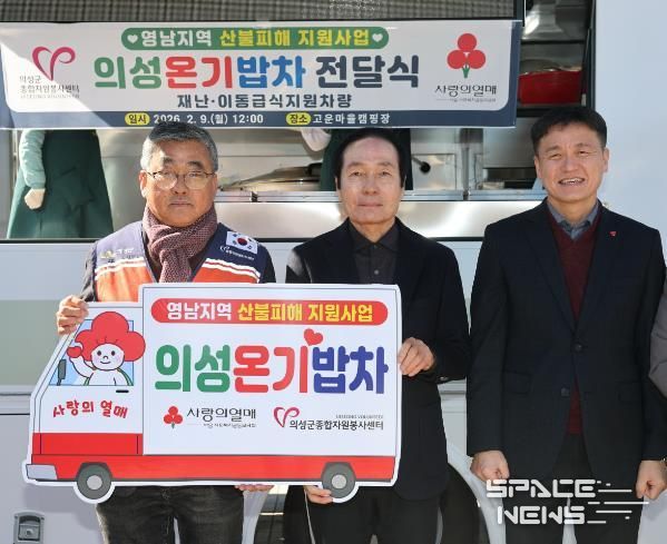 스페이스뉴스 스페이스뉴스 기자 | 의성군은 의성군종합자원봉사센터가 지난 2월 9일 단촌면 고운마을캠핑장에서 재난 및 취약계층 급식 지원을 위한 '의성온기밥차' 이동급식 지원차량 전달식을 개최했다고 밝혔다.