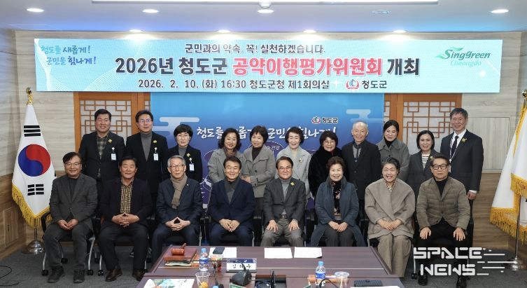 스페이스뉴스 스페이스뉴스 기자 | 청도군은 지난 10일 군청 제1회의실에서 ‘2026년 청도군 공약이행평가위원회’를 개최하고 민선 8기 공약사항에 대한 추진 상황을 점검했다.