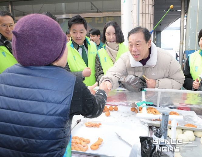 스페이스뉴스 스페이스뉴스 기자 | 최민호 세종특별자치시장이 설 명절을 앞두고 세종대평시장에서 장을 보며 전통시장 활성화와 지역 상권 회복에 힘을 보탰다.