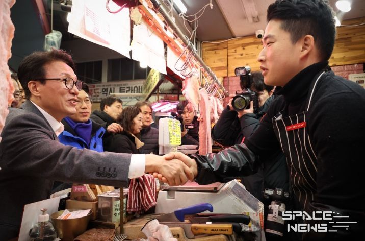 스페이스뉴스 스페이스뉴스 기자 | 김민석 국무총리는 2월 12일, 설 명절을 앞두고 청주 육거리종합시장을 방문했다.
