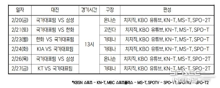 스페이스뉴스 스페이스뉴스 기자 | 3월에 열리는 월드베이스볼클래식(이하 WBC)에 대비해 일본 오키나와에 훈련 캠프를 차리는 대한민국 국가대표팀의 평가전 일정과 중계가 확정됐다.