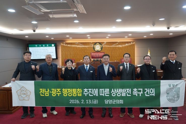 스페이스뉴스 스페이스뉴스 기자 | 담양군의회는 13일, 제342회 임시회 제2차 본회의에서 '전라남도–광주광역시 행정통합 추진에 따른 상생발전 촉구 건의안'을 의결했다.