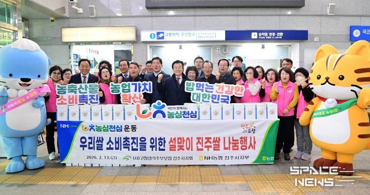스페이스뉴스 스페이스뉴스 기자 | 진주시는 지난 13일 진주역에서 설 명절 연휴를 맞아 귀성·귀경객들에게 새해 인사를 전하고, 지역의 대표 농산물인 ‘진주쌀’ 홍보 활동을 펼쳤다.