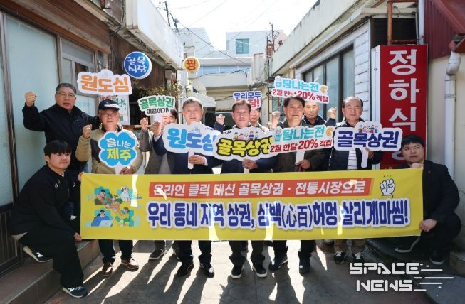 스페이스뉴스 스페이스뉴스 기자 | 김완근 제주시장은 2월 13일 제주 동문시장에서 한국자유총연맹 제주시지회(회장 양문길) 임원들과 함께 지역상권 소비 심백(心百) 캠페인을 전개했다.