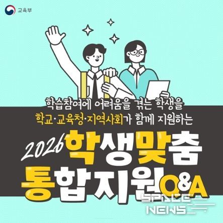 스페이스뉴스 스페이스뉴스 기자 | 학습참여에 어려움을 겪는 학생을 학교·교육청·지역사회가 함께 지원하는 <2026 학생맞춤통합지원 Q&A>