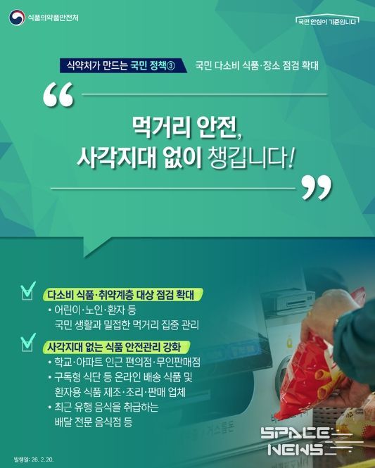 스페이스뉴스 기자 | 식약처가 만드는 국민 정책- 국민 다소비 식품·장소 점검 확대