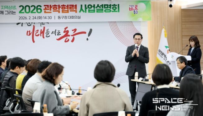 스페이스뉴스 스페이스뉴스 기자 | 대전 동구는 24일 동구청 대회의실에서 대전대학교, 우송대학교, 대전보건대학교, 우송정보대학, 한국폴리텍Ⅳ대학 대전캠퍼스 등 지역 내 5개 대학과 함께 ‘2026년 구-대학 연계 관학협력 사업설명회’를 개최했다고 밝혔다.