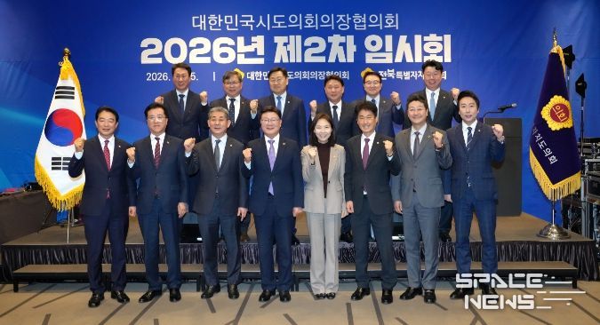 스페이스뉴스 스페이스뉴스 기자 | 문승우 전북특별자치도의회 의장(군산4)이 25일 군산 라마다 호텔에서 열린 2026년 제2차 대한민국시도의회의장협의회에서 내실있는 예산안 심의를 위해 제출 기한을 앞당기도록 ‘지방자치법’ 개정을 촉구했다.