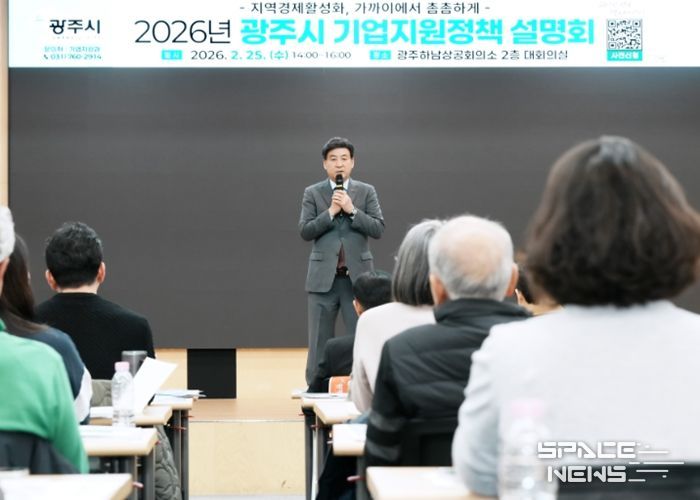 스페이스뉴스 스페이스뉴스 기자 | 광주시는 지난 25일 광주하남상공회의소에서 기업 관계자 100여 명이 참석한 가운데 ‘2026년 광주시 기업 지원 정책 설명회’를 개최했다.