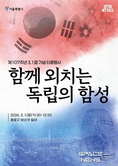 스페이스뉴스 스페이스뉴스 기자 | 서울시는 3월 1일 제107주년 3.1절을 맞아 순국선열의 희생과 독립정신을 기리기 위한 타종행사를 개최한다. 이번 행사는 독립유공자 후손과 10대 학생들이 참여해 107년 전 울려 퍼졌던 만세 함성이 현재를 넘어 미래로 이어지는 희망의 의미를 담을 예정이다.