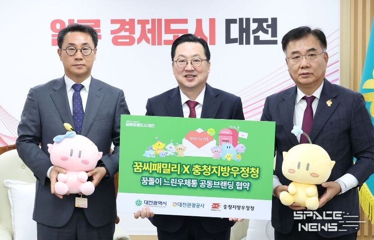 스페이스뉴스 스페이스뉴스 기자 | 대전시는 6일 시청 10층 응접실에서 대전관광공사, 충청지방우정청과 함께 ‘꿈돌이 느린우체통’ 사업 추진을 위한 공동브랜딩 업무협약을 체결했다.
