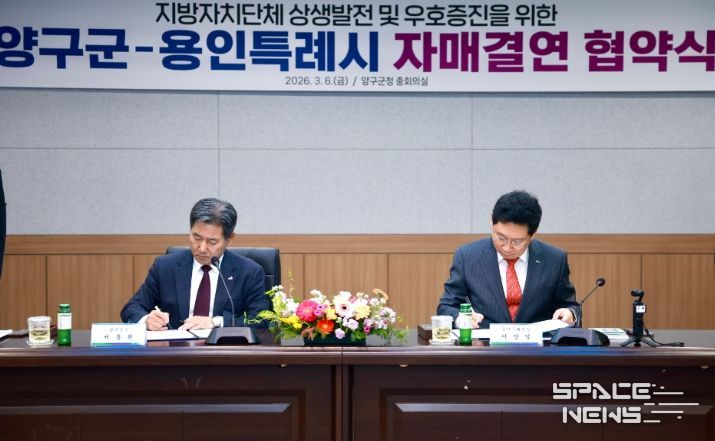 스페이스뉴스 스페이스뉴스 기자 | 용인특례시는 6일 강원특별자치도 양구군과 자매결연을 하고, 두 도시의 교류와 발전을 위해 적극 협력하기로 했다.