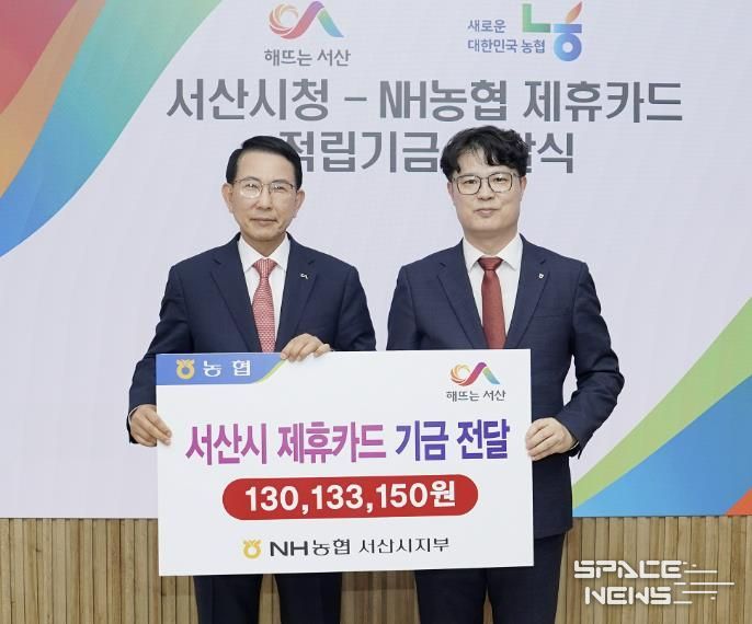 스페이스뉴스 스페이스뉴스 기자 | 충남 서산시는 지난 9일 시청 시장실에서 ‘NH농협은행 제휴카드 적립기금 전달식’을 개최했다고 밝혔다.