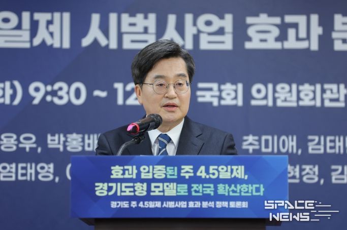 스페이스뉴스 스페이스뉴스 기자 | 김동연 경기도지사가 경기도형 주4.5일제 도입 효과가 입증됐다며 전국적 확산과 대기업·중소기업 상생협력 모델 도입 의지를 강하게 밝혔다.