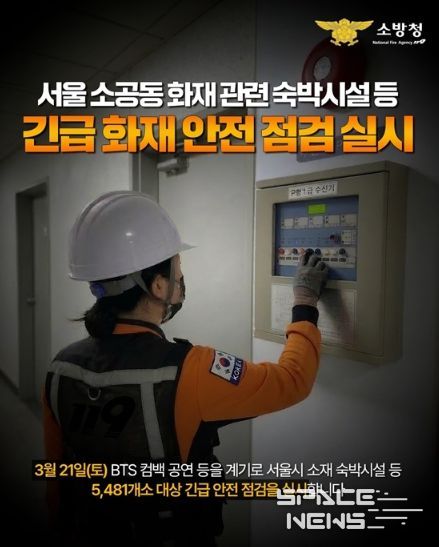 스페이스뉴스 스페이스뉴스 기자 | 서울 소공동 화재 관련 숙박시설 등 긴급 화재 안전점검 실시
