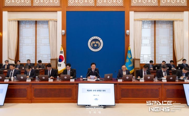 이 대통령은 이날 청와대에서 열린 제28차 수석보좌관회의 모두발언을 통해 "중동 전황의 불투명성이 확대되면서 원유와 일부 핵심 원자재에 대한 보다 적극적이고 장기적인 수급 관리 대책의 필요성이 커지고 있다"며 이 같이 밝혔다.