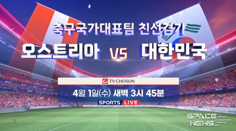 스페이스뉴스 스페이스뉴스 기자 | '대한민국 축구대표팀 경기 주관 방송사'인 TV CHOSUN이 4월 1일(수) 새벽 3시 45분부터 축구 국가대표팀 친선경기 '대한민국 vs 오스트리아'를 생중계한다.