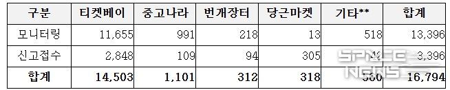 2026년 2월부터 3월까지 프로야구 암표 신고·모니터링 결과, 약 1만 6천여 건이 확인됐다. 특히 개막전(3. 28.~29.) 전후로는 정가 대비 최대 약 13배 고액 거래, 동일 계정 다량 좌석 확보 및 재판매 등 조직적 거래 정황이 다수 확인됐다. 이 중 다량·연석 판매, 과도한 웃돈 거래, 동일 계정 반복 거래 등 부정거래 의심 사례를 분석․파악해 경찰청에 수사를 의뢰했다.