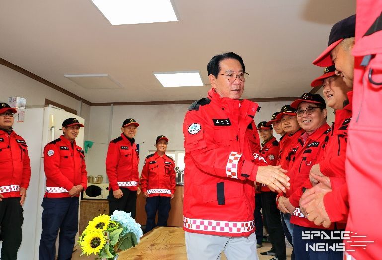 송 군수는 산림재난대응단의 근무 실태를 살피고 현장 요원들의 노고를 격려했다.