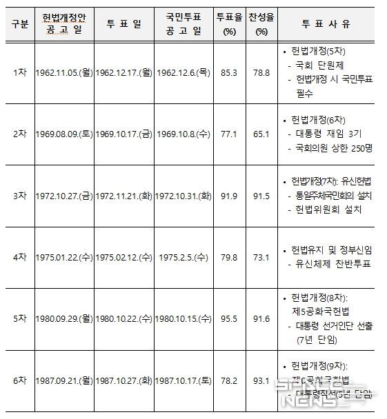한편, 중앙선관위는 이번 헌법개정안이 국회에서 의결*되는 경우 국민투표와 제9회 전국동시지방선거가 동시 실시되므로, 재외국민투표관리팀 및 선거종합상황실을 확대·편성하고 관련 지침을 마련하는 등 국민투표를 대비한 각종 준비를 시작한다면서, 국민투표 관리에 추가로 필요한 인력, 장비·물품 등도 문제없이 확보할 수 있도록 철저하게 준비할 것이라고 밝혔다.