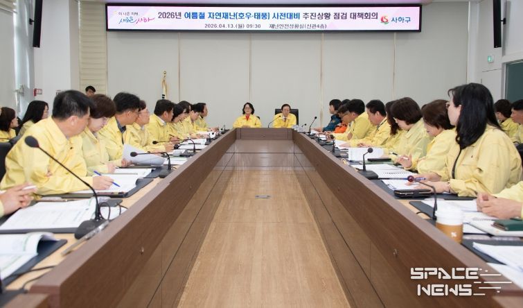 스페이스뉴스 스페이스뉴스 기자 | 부산 사하구는 4월 13일 사하구 재난안전상황실에서 유관기관과 합동으로 ‘2026년 여름철 자연재난 사전대비 추진상황 점검 대책회의’를 개최하고 기관 간 협조체계 구축 및 부서별 추진사항 등을 논의했다.